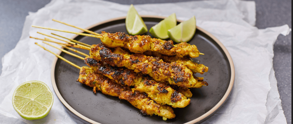 Marinate chicken skewers in a mixture of yoghurt, turmeric, garlic, and lemon juice. Grill or broil until cooked through and serve with a side of roasted vegetables for a flavorful and anti-inflammatory meal.